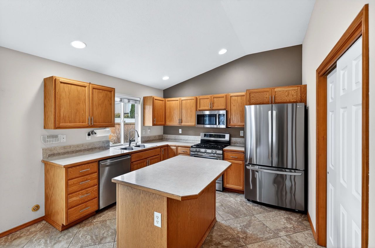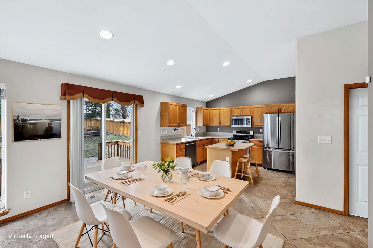 Welcome home to this beautiful 4-bedroom, 3-bath rancher located in the highly sought-after Mead School District. Designed with comfort and functionality in mind, this home features a bright open layout filled with natural light from large windows throughout the main living spaces. The spacious primary suite offers a true retreat with a large soaking tub, tile shower, dual vanities, and a generous walk-in closet. Main floor utilities make everyday living convenient, while the gas range and open kitchen layout are perfect for cooking and entertaining. Outside, enjoy a private park-like backyard complete with stone paver walkways, a peaceful waterfall pond, and a fenced garden area. The home also features a brand new roof, a large 3-car garage, and a walk-in mudroom with pantry storage. The unfinished basement provides abundant storage or the perfect opportunity to expand into additional living space. This home offers the ideal blend of privacy, comfort, and location.