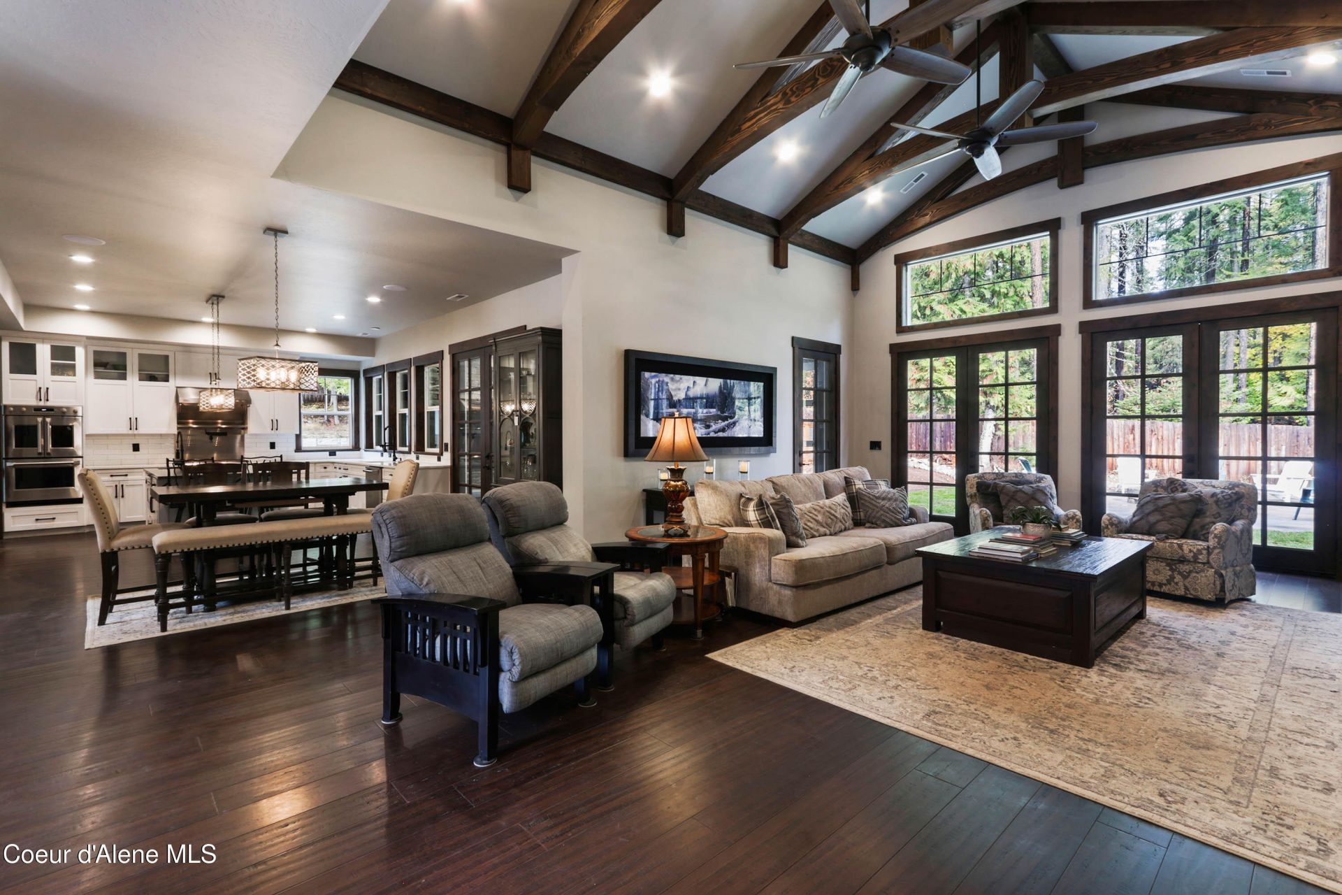 Rare opportunity for multi-generational living! Absolutely stunning estate with two guest residences so close to town. Nestled on 5 forested acres, a total of 11,027 square feet of living space includes the spacious 4-bedroom 7327 sq ft main home, 2-bedroom,1500 sq ft flat and flexible floor plan of 2200 square feet over the 30x40 shop currently under construction. Gather in style with soaring ceilings, dramatic rock fireplace and wood floors underfoot. The chef's kitchen with Monogram appliances, loads of cabinets and a central island flows into formal and informal dining areas. Inside spaces transition to outdoor living spaces and a 4-season attached cabana with its own fireplace and built-in grill. Every bedroom has an en-suite bath. The well-appointed, ground-level guest home offers a full kitchen, laundry and separate entry. High-clearance breezeway leads to the shop and upstairs flex space to be finished with the same quality components. Enjoy privacy and convenience in the sought-after Forest Knolls community, minutes from Sandpoint, Schweitzer, and the lake. Furnishings and owner financing may be negotiated.